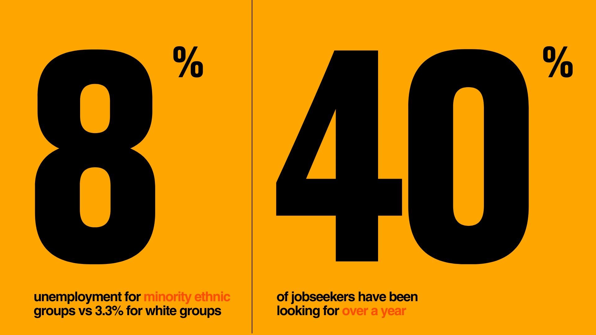 8% vs 3.3% unemployment Unemployment is higher for Black and minority ethnic professionals than for white professionals.